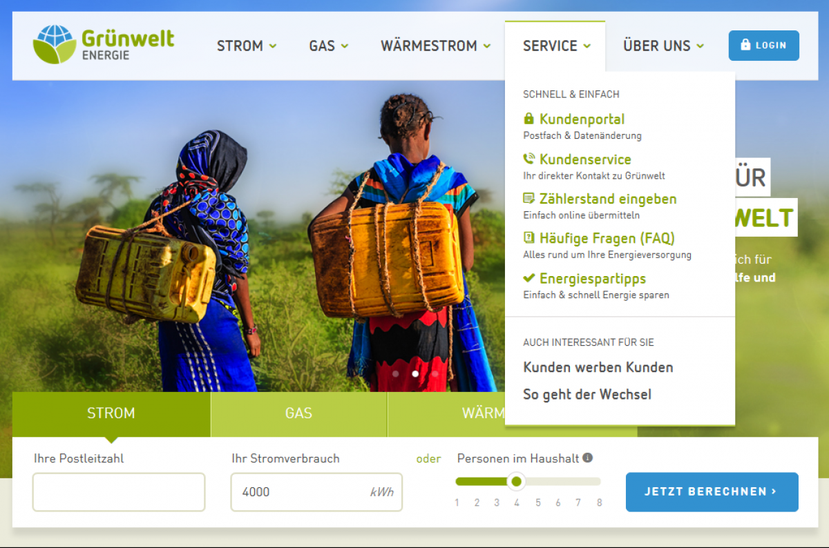 Zu Grünwelt Energie gehören folgende Produkte rund um Strom und Erdgas: grünstrom easy, grünstrom classic, grünstrom pur 12, grünstrom pur, grünstrom profi 12, grünstrom profi 24, grüngas easy, grüngas classic, grüngas pur 12, grüngas pur, grüngas profi oder die grüngas profi 24.